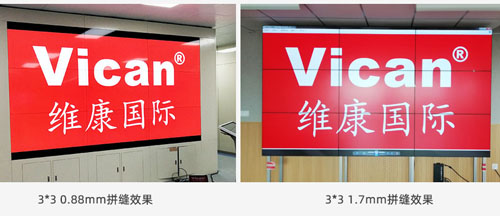 拼接屏0.88和1.7區別,我們都知道,拼接屏有一個關鍵的參數是拼接縫隙,也叫物理拼縫,目前0.88mm和1.7mm是拼縫比較小的兩種,是
